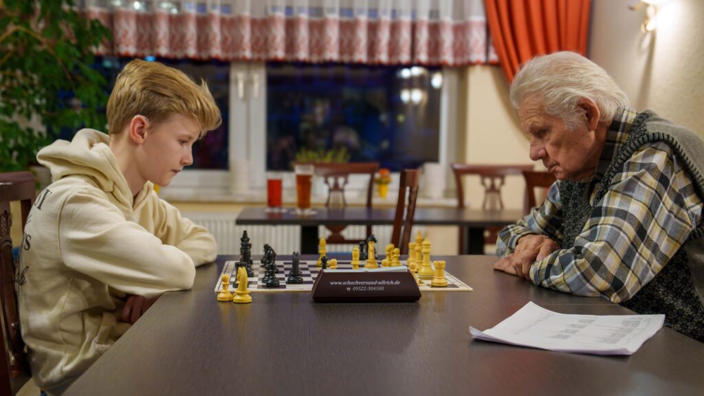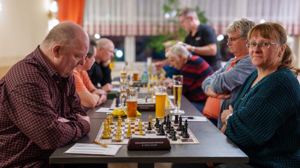 An dem Abend wurde auch Wettkampfschach in der Vereinmeisterschaft gespielt. Es kam zum „hochbrisanten“ Spiel Schubs gegen Ute, welches Frank auch dokumentiert hat. Dem Autor ist leider der Ausgang entfallen. Vielleicht findet sich ein gnädiger Kommentator.