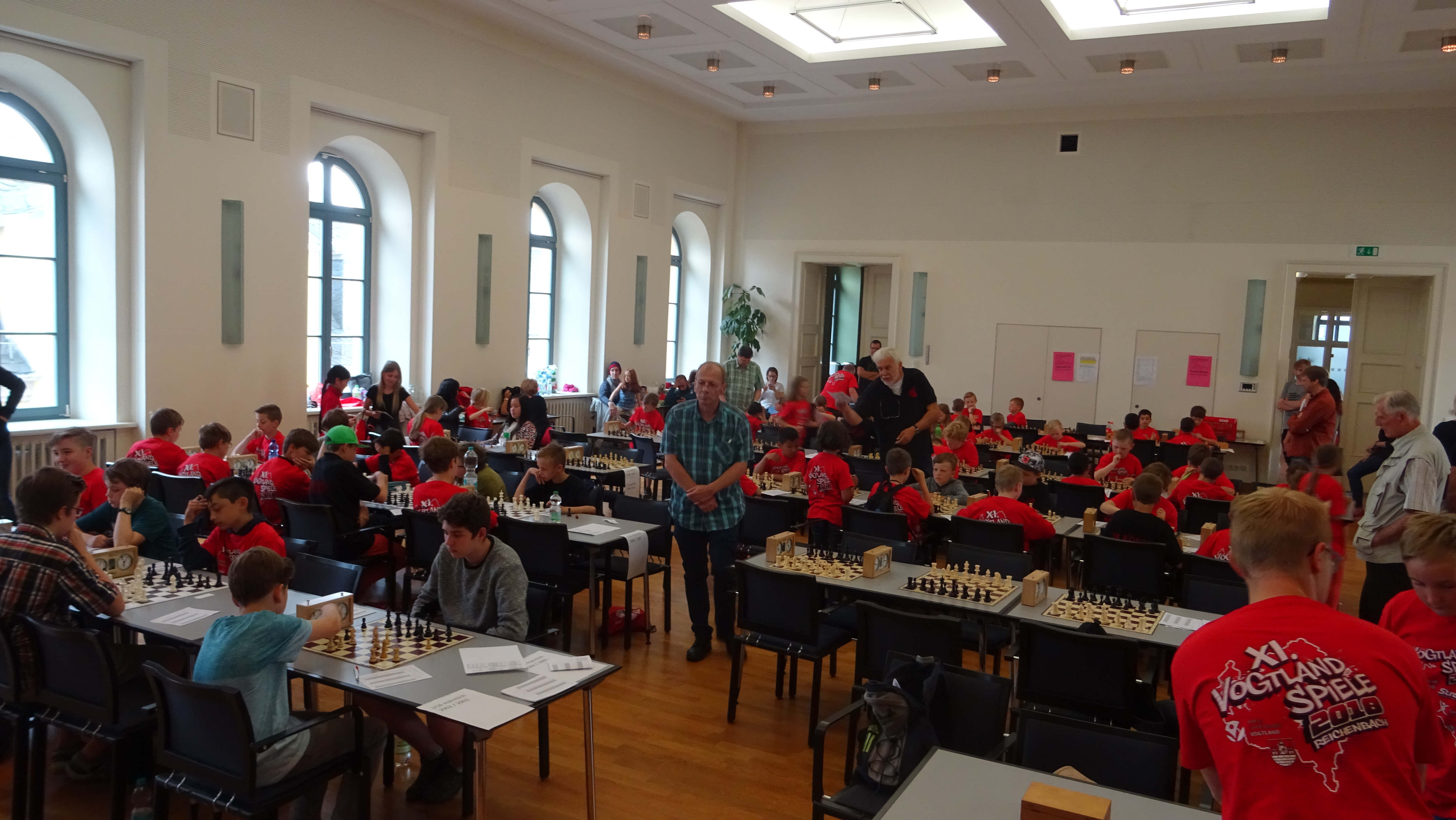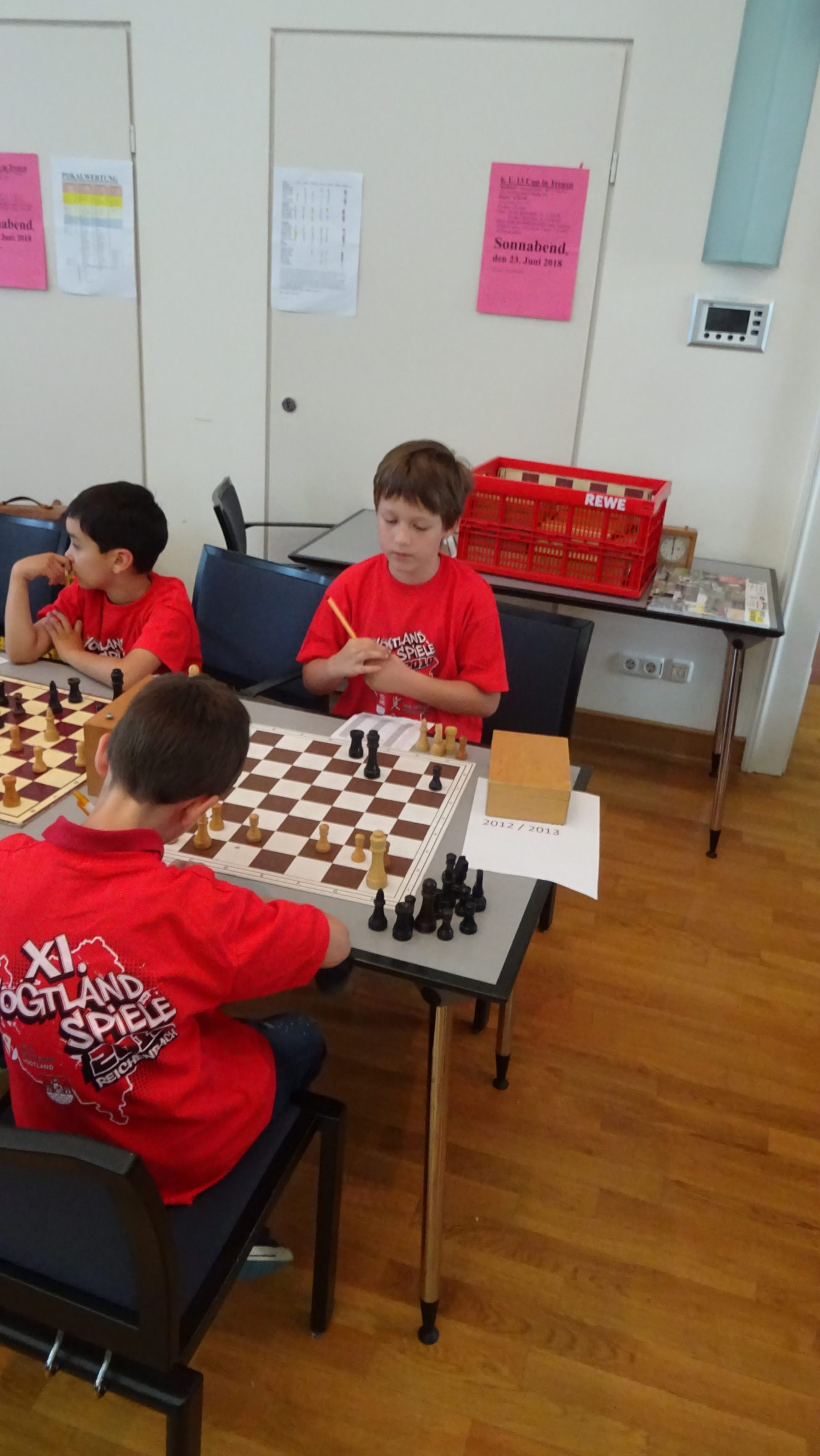 Im Gymnasium stellten sich Luisa Woywode, Anton Grondziok, Jakob Meinel und Rüdiger Atze der Mannschaft des VSC in der Bezirksmannschaftsmeisterschaft U12. Ein Kampf David gegen Goliath stand bevor, der VSC ist Vierter der Setzliste hat mit Timur Melestan den aktuellen vogtländischen U10-Meister und mit Luca-Paul Wernecke den letztjährigen U10-Meister in seinen Reihen auch Gabriel Pierel und Jenifer Adams zählen zur vogtländischen Spitze in ihrer Altersklasse, während unsere Mannschaft mit zwei vogtländischen Vizemeistern aufwarten konnten Luisa (U12w) und Rüdiger (U8 – hinter dem VSC-Spieler Maxim Melestan, dem Bruder von Timur, der es noch nicht in die Mannschaft geschaffte hat) und damit den 15. und letzten Platz der Setzliste belegen.