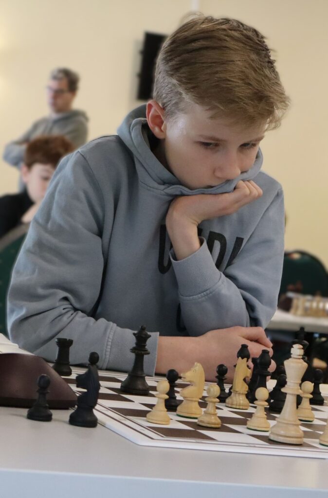 Die vierte Runde gab den nächsten kleinen Dämpfer. Gegen Bela Wisniewski (Dresden) reichte es mit Schwarz „nur“ zum Remis. Mit 1,5/4 ging es somit in den freien Nachmittag. Danach spielte Toni groß auf nacheinander besiegte er Julian Naumann (Dresden), Ezra Huang (Leipzig) und Erik Dotschuweit (Aue). Damit ist er mit 4,5/7 punktgleich mit dem Dritten Joshua Li (Chemnitz) auf dem undankbaren vierten Platz.